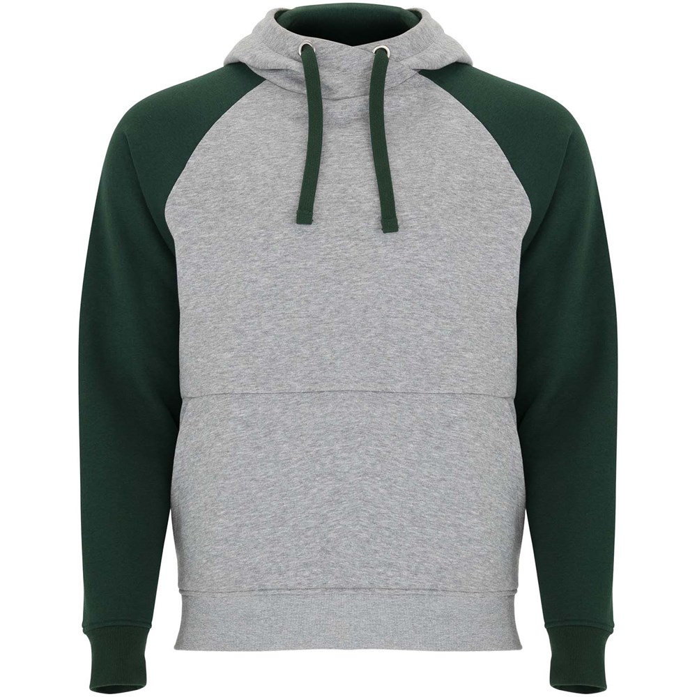 Zweifarbiger Unisex Kapuzenpulli. Kapuze mit gekreuztem Kragen und Metallösen. Innenkapuze, Kordelzug und Raglanärmel in Kontrastfarbe. Kängurutasche. Bündchen und Saum aus elastischem 1×1-Rippstrick. Abnehmbares Etikett.