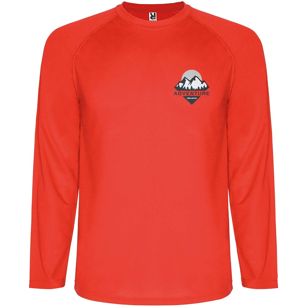 Langärmeliges Funktions-Shirt mit Raglanärmeln. Passende Overlocks an den Ärmeln (ohne Seitennähte). Verdeckte Nähte im Kragen. Atmungsaktiver Stoff, der leicht zu waschen und zu trocknen ist. Abnehmbares Etikett.