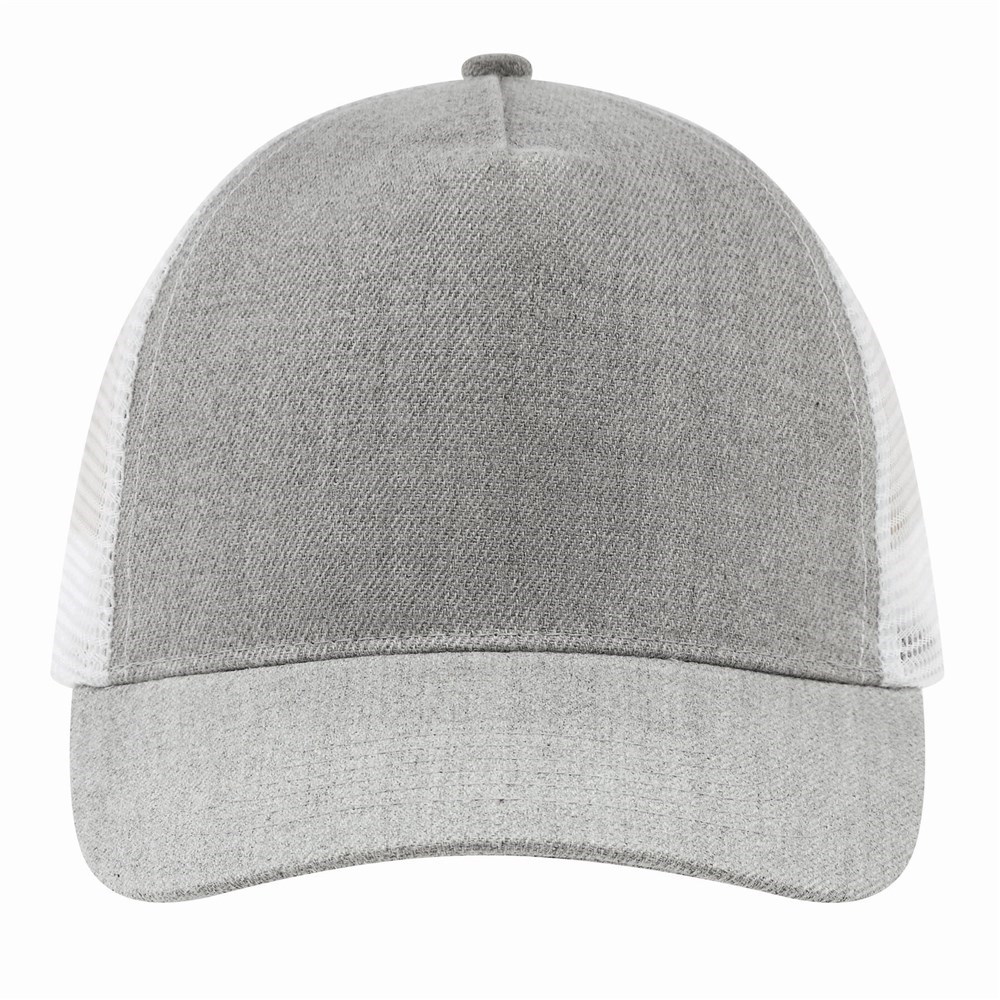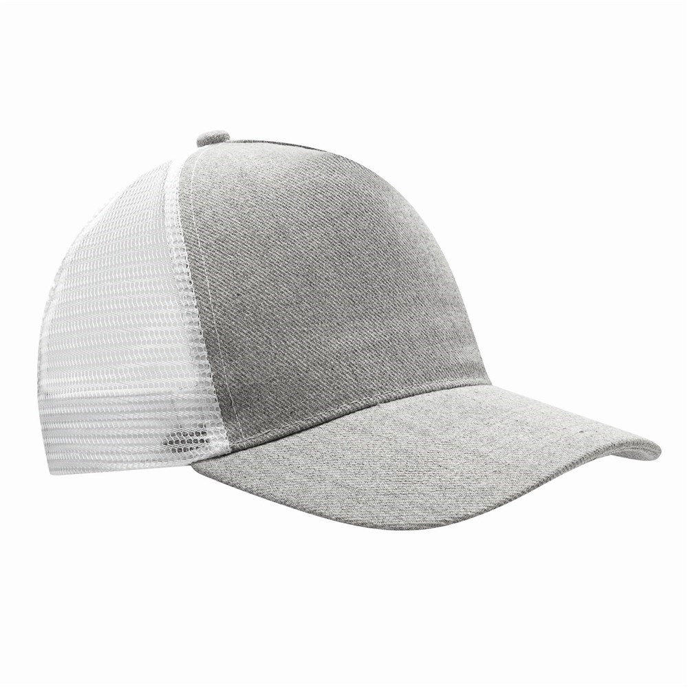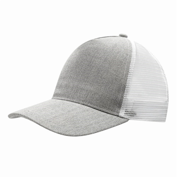 5-Panel-Baseball-Cap CASUAL FIT, 2-farbig: verstärktes, meliertes Frontsegment, übrige Segmente aus Netzstoff, Knopf, größenverstellbarer, doppelreihiger Kunststoffverschluss am Hinterkopf