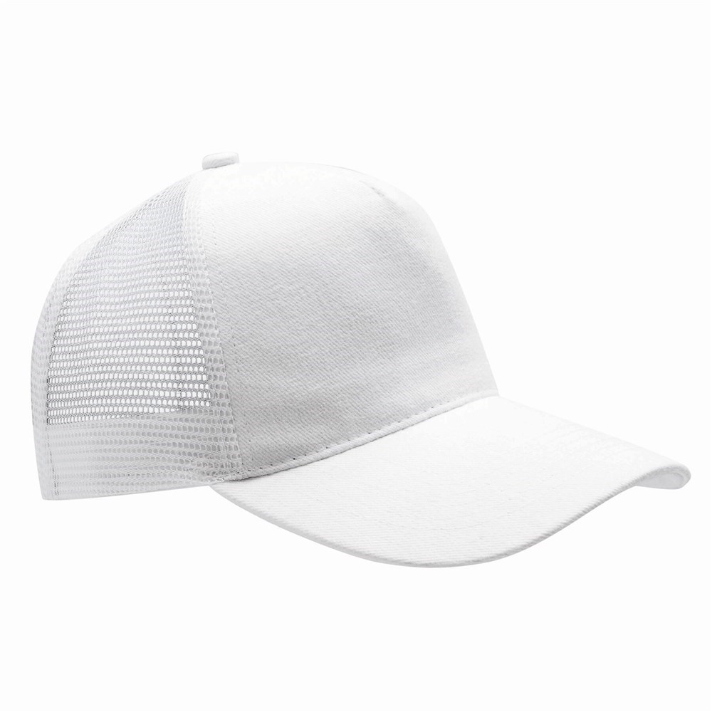 5-Panel-Cap FASTBALL: verstärktes Frontsegment aus gebürsteter Baumwolle, übrige Segmente aus Netzstoff, Knopf, größenverstellbarer, doppelreihiger Kunststoffverschluss am Hinterkopf