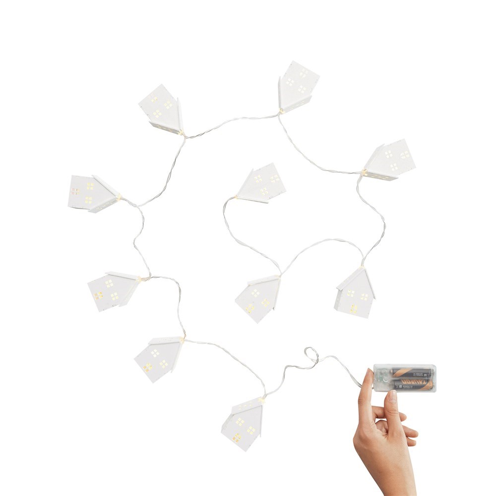 Lichterkette COSY LIGHTS: ca. 168 cm lang, jedes der 10 Holz-Häuschen wird mit einer warmweißen LED beleuchtet, Timerfunktion (6 Stunden an, 18 Stunden aus), batteriebetrieben (2x AA Batterien nicht enthalten)