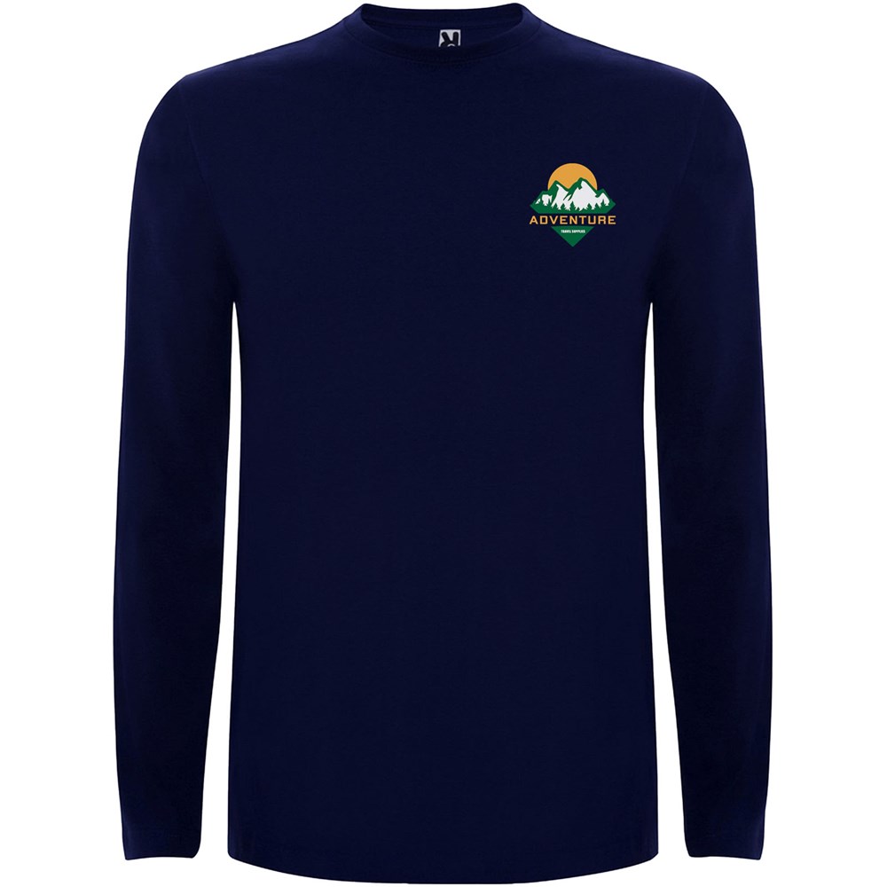 Langärmeliges Shirt aus Schlauchgewebe mit Rundhalsausschnitt aus 4 Schichten. Verstärkte Nähte an Kragen und Schultern. Keine Ärmelbündchen. Herausnehmbares Etikett. Schlauchdesign in Erwachsenengrößen und Seitennähte in Kindergrößen. Das Modell ist 185 cm groß und trägt Größe L.