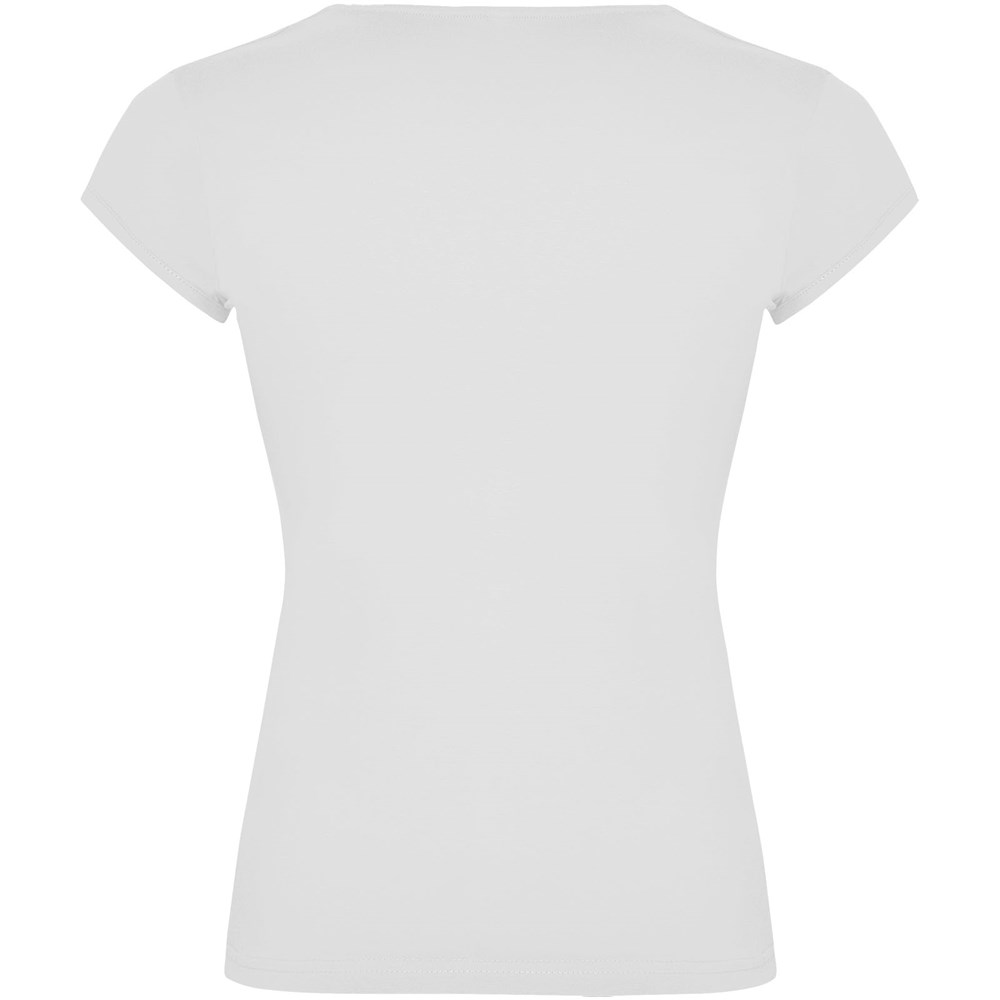 Tailliertes T-Shirt V-Ausschnitt vorne. Halbe Ärmel und Seitennähte. Hochwertiges Material für ein weiches und angenehmes Tragegefühl. Herausnehmbares Etikett. Das Modell ist 179 cm groß und trägt Größe S.