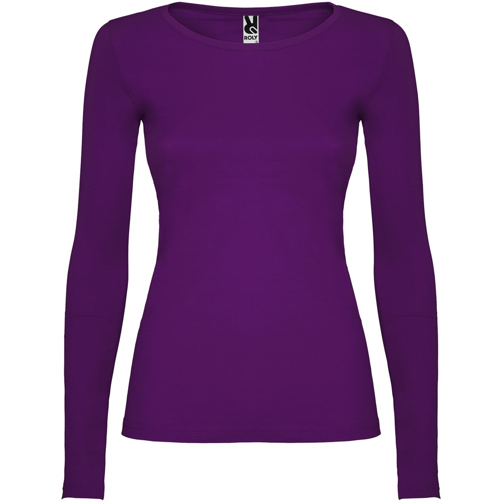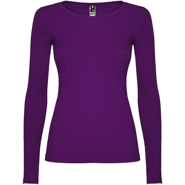 Langärmeliges, halb tailliertes T-Shirt mit feinem Halsbündchen. Keine Ärmelbündchen. Seitennähte. Herausnehmbares Etikett.