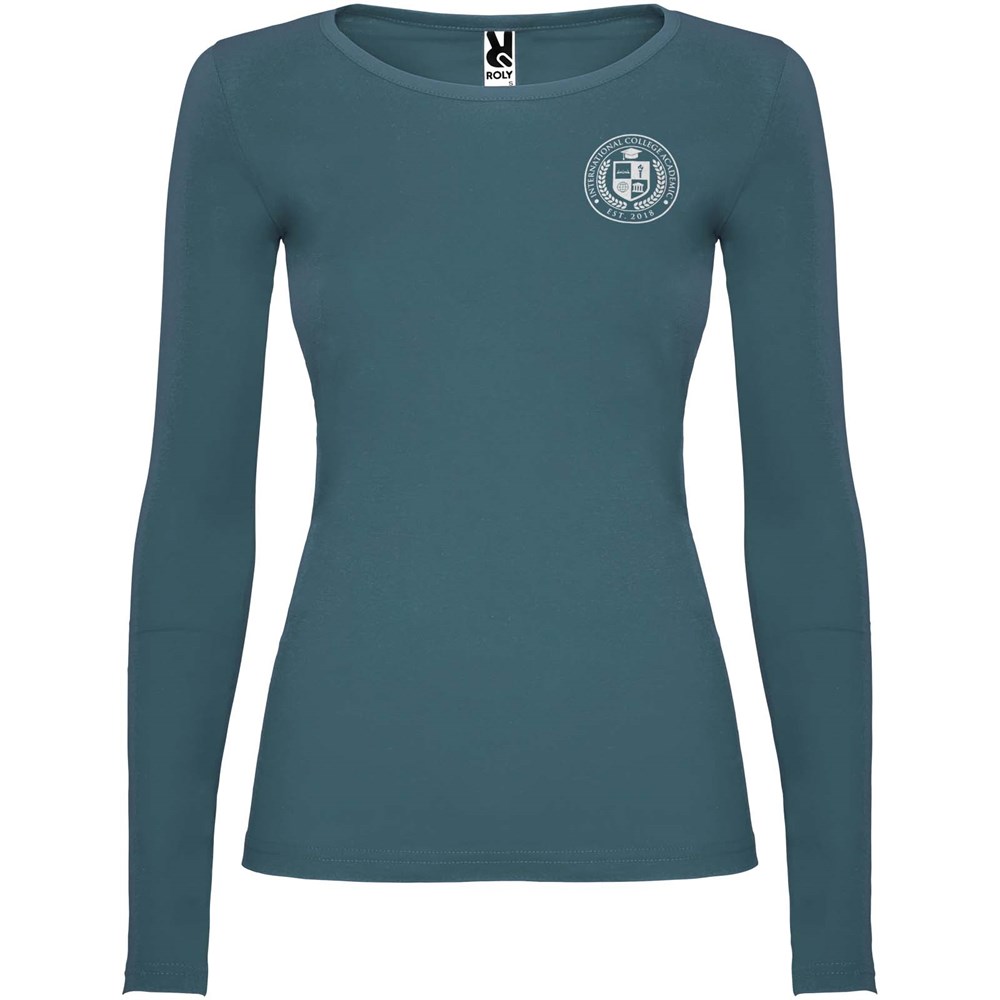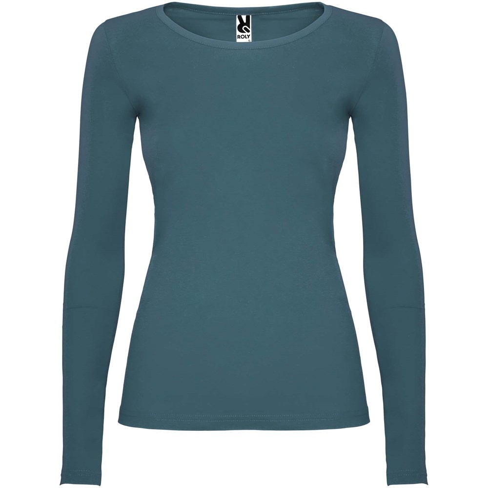 Langärmeliges, halb tailliertes T-Shirt mit feinem Halsbündchen. Keine Ärmelbündchen. Seitennähte. Herausnehmbares Etikett.