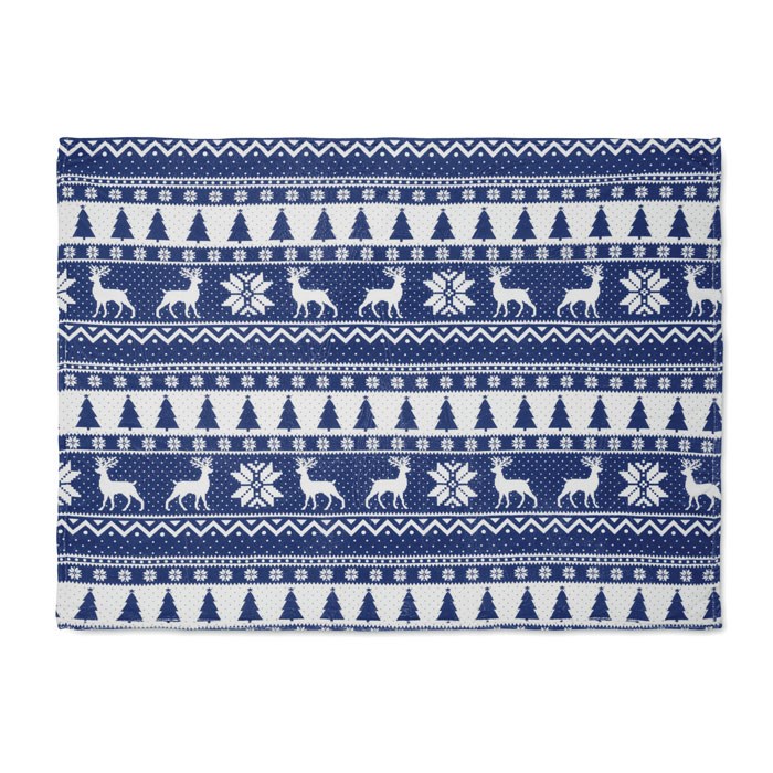 RPET-Coral-Fleece-Decke 190 g/m² mit winterlichem Muster. Inkl. Band mit bedruckbarer Karte.