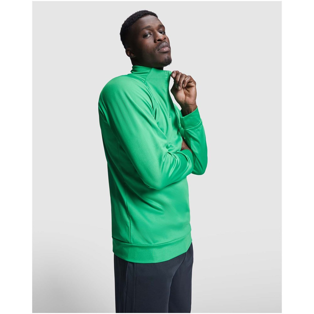 Sweatshirt aus Funktionsstoff mit Raglanärmeln und angerauter Innenseite. Stehkragen mit Half-Zip Reißverschluss und passenden verstärkten, verdeckten Nähten. 1x1-Rippstrick an Kragen, Ärmelbündchen und Saum. Abnehmbares Etikett. Sweatshirt passend zur Neapolis Hose.