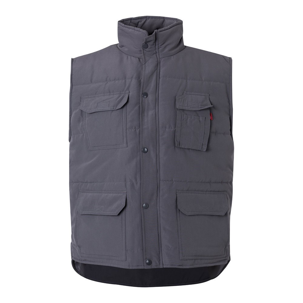 Steppweste mit mehreren Taschen (220 g/m²), aus Polyester (100%). Verdeckter Reißverschluss mit Knopfleiste. Elastischer Seitenbund und Windfang im Armausschnitt. Mit sieben Taschen (1 Brusttasche, 2 Untertaschen, 2 Seitentaschen und 1 Brusttasche). Größe: S, M, L, XL, 2XL, 3XL