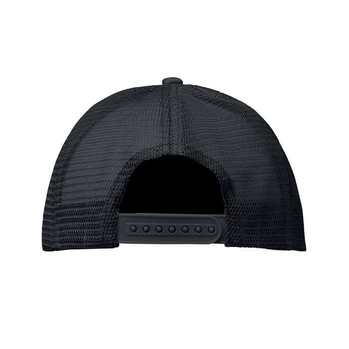 Trucker Kappe. 5 Panele. 140-150 gr/m2 Polyester. Verstellbarer Kunststoffverschluss. Weißes Frontpanel, farbiger Kappenschirm aus Polyester Jersey mit Schaum-Verstärkung. Weitere Panele aus Mesh. Größe 7 1/4.
