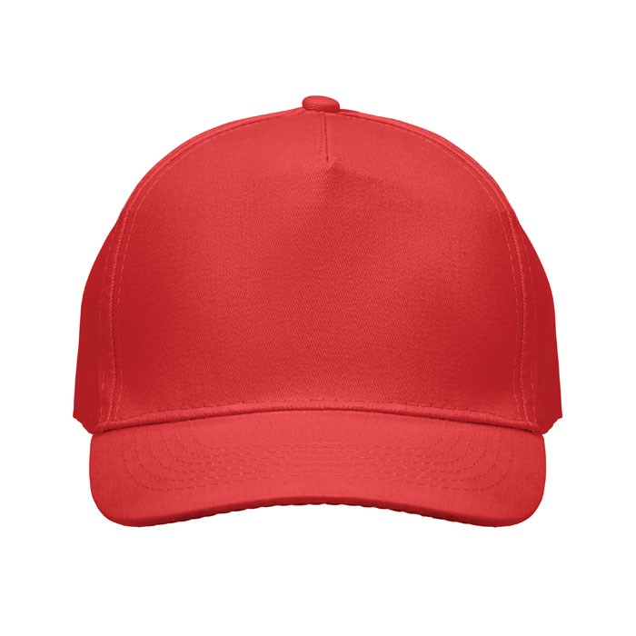 5-Panel-Baseball-Cap aus Baumwolltwill 180 g/m² mit verstellbarem Klettverschluss. Zwei farblich abgestimmte, umstickte Belüftungslöcher. Größe 7 1/4.