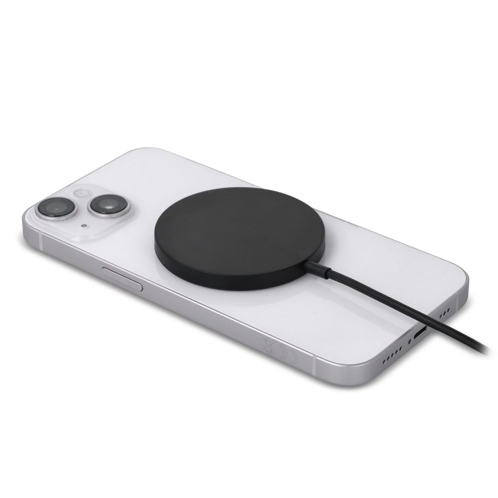 Dieses nachhaltige kabellose Ladegerät aus recyceltem ABS unterstützt schnelles Laden mit einer Ausgangsleistung von 15 W für Ihr Telefon und funktioniert mit MagSafe. Mit Schutzmaßnahmen gegen Überlastung, Überentladung, Kurzschluss und Überspannung sorgt es für sicheres Laden.