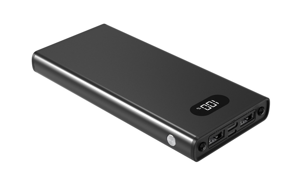 Typ C Ladekabel (30 cm) und digitaler Ladestandsanzeige.