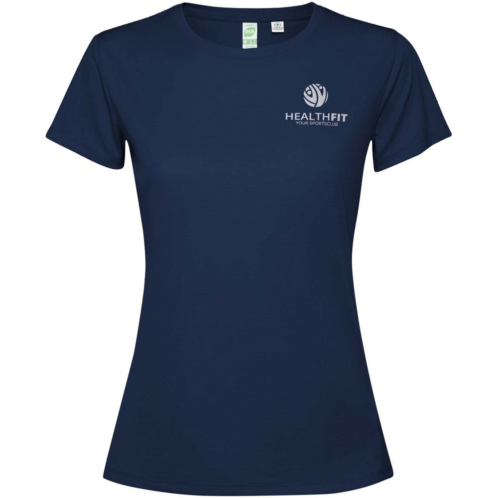 Funktions T-Shirt für Damen. Kragen mit passenden Nähten. Rückensaum etwas länger als der Frontsaum. Seitennähte nach vorne versetzt.