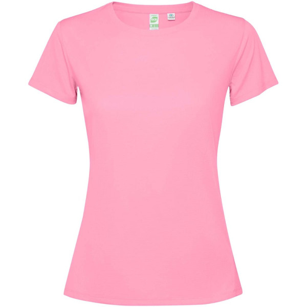 Funktions T-Shirt für Damen. Kragen mit passenden Nähten. Rückensaum etwas länger als der Frontsaum. Seitennähte nach vorne versetzt.