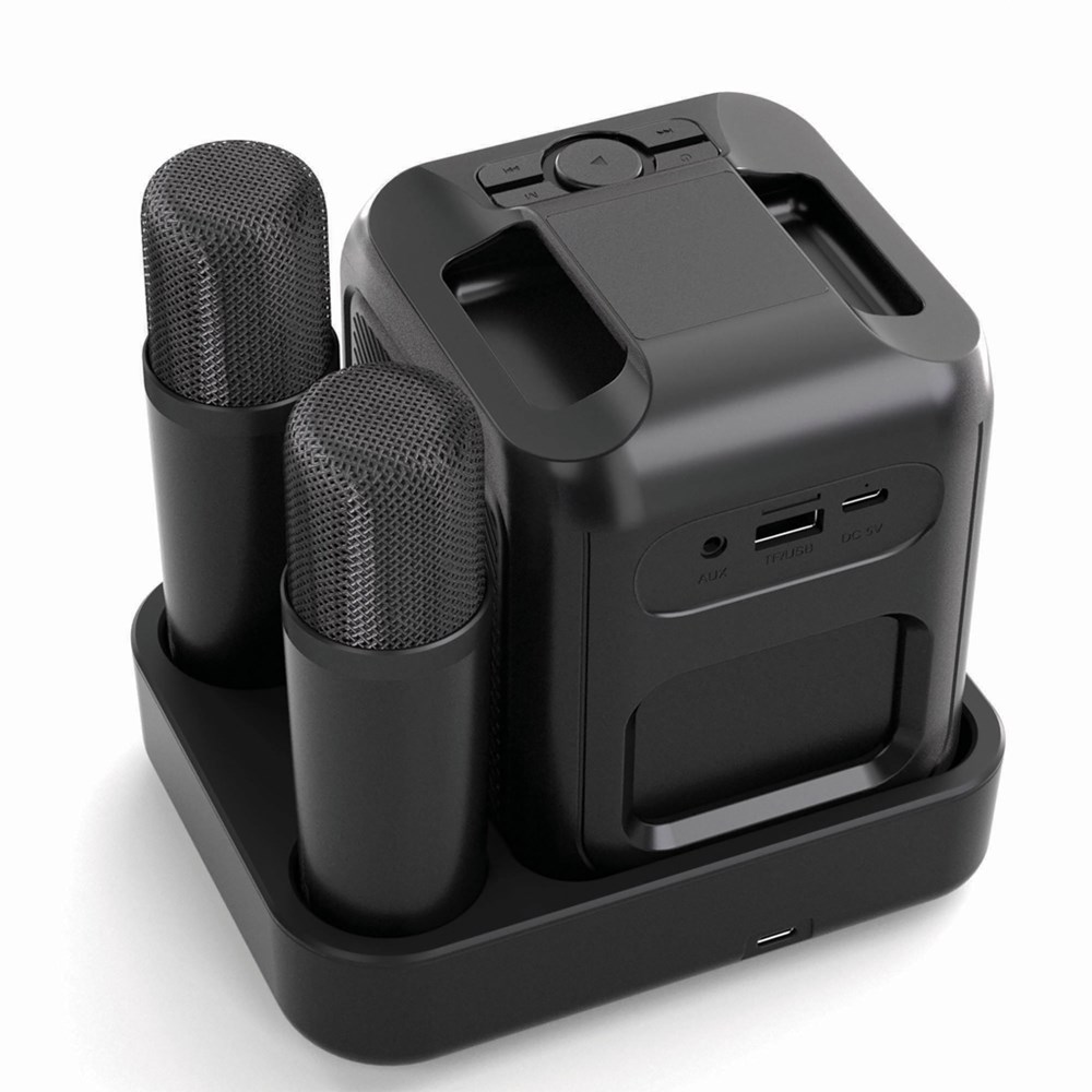 Das hochwertige Karaoke-Set mit zwei Mikrofonen, ermöglicht es Ihnen, mit Ihren besten Freunden in Stereo zu singen. Der Lautsprecher und das Mikrofon werden mit einer Induktionsladestation geliefert, sodass Sie alle drei gleichzeitig aufladen können. Starten ein Musikvideo mit Text ein oder aktivieren Sie den Text in Ihrem Musikplayer und machen Sie sich bereit für stundenlangen Spaß! Der 5W-Lautsprecher ist mit einem 2000mah-Akku ausgestattet, der eine Betriebsdauer von bis zu 6h ermöglicht. Der Lautsprecher unterstützt auch TF-Karten & USB für Musik. Wenn Sie die Mikrofone verwenden, können Sie sich bis zu 10m vom Lautsprecher entfernen. Der Lautsprecher besteht aus RCS (Recycled Claim Standard) zertifiziert recyc. ABS. Gesamter rec. Inhalt: 53%, bezogen auf das Gesamtgewicht des Artikels. Die RCS-Zertifizierung gewährleistet eine vollständig zertifizierte Lieferkette der rec. Materialien. Inklusive Type-C-Ladekabel aus RCS-zertifiziert rec. TPE. Verpackt im FSC®-Mix. PVC-frei.