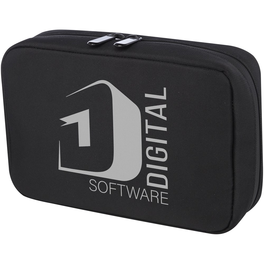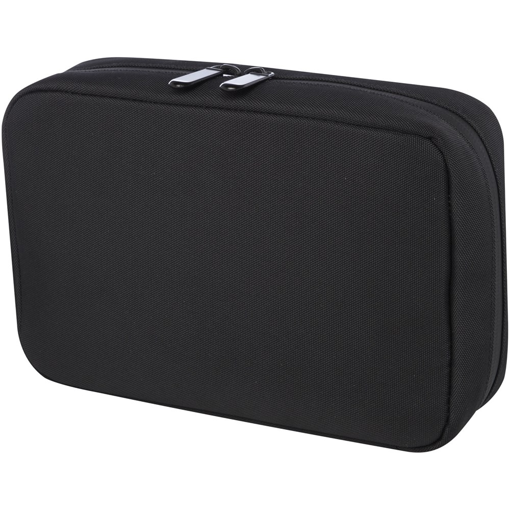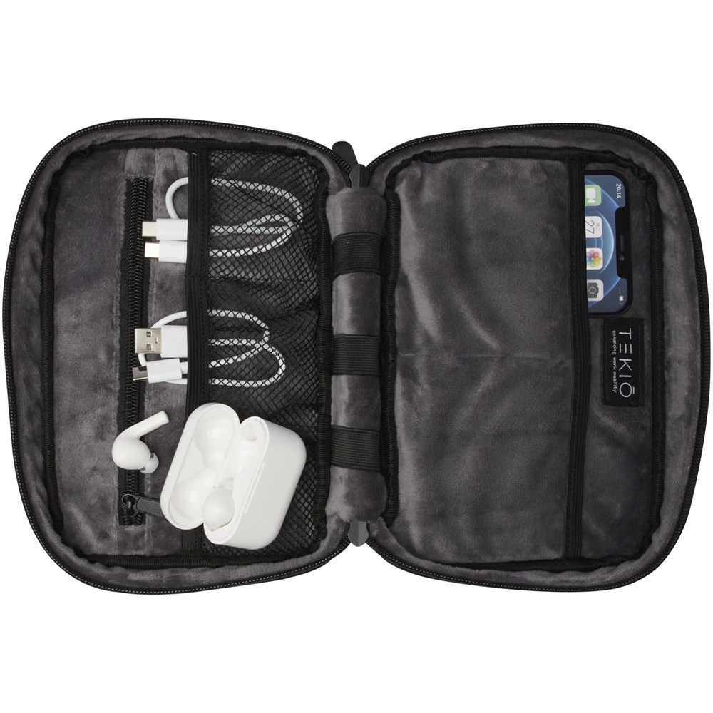 Die Rise Organizer-Tasche ist eine vielseitige und hybride Lösung, um alle technischen Gegenstände zu organisieren. Diese Hartschalentasche aus strapazierfähigem 900D-GRS-recyceltem Polyester und GRS-recyceltem Samtfutter verfügt über zwei Seitenfächer, Netztaschen, elastische Bänder am Boden für Kabel und eine Reißverschlusstasche für weiteres Zubehör. Alle Taschen sorgen für eine optimale Organisation und die Hartschale schützt alle wertvollen Geräte.