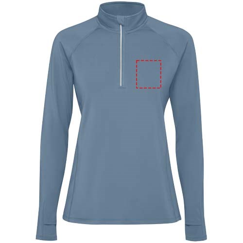 Langarm Funktions-Sweatshirt für Damen mit Raglanschnitt. Schlanke Passform. Kragen mit halbem Reißverschluss und reflektierenden Details. Verstärkte Nahtabdeckungen. Ärmelbündchen mit Daumenöffnung. Reflektierende Details am Rücken. Rückensaum etwas länger als der Frontsaum. Warmes gebürstetes Innenmaterial.