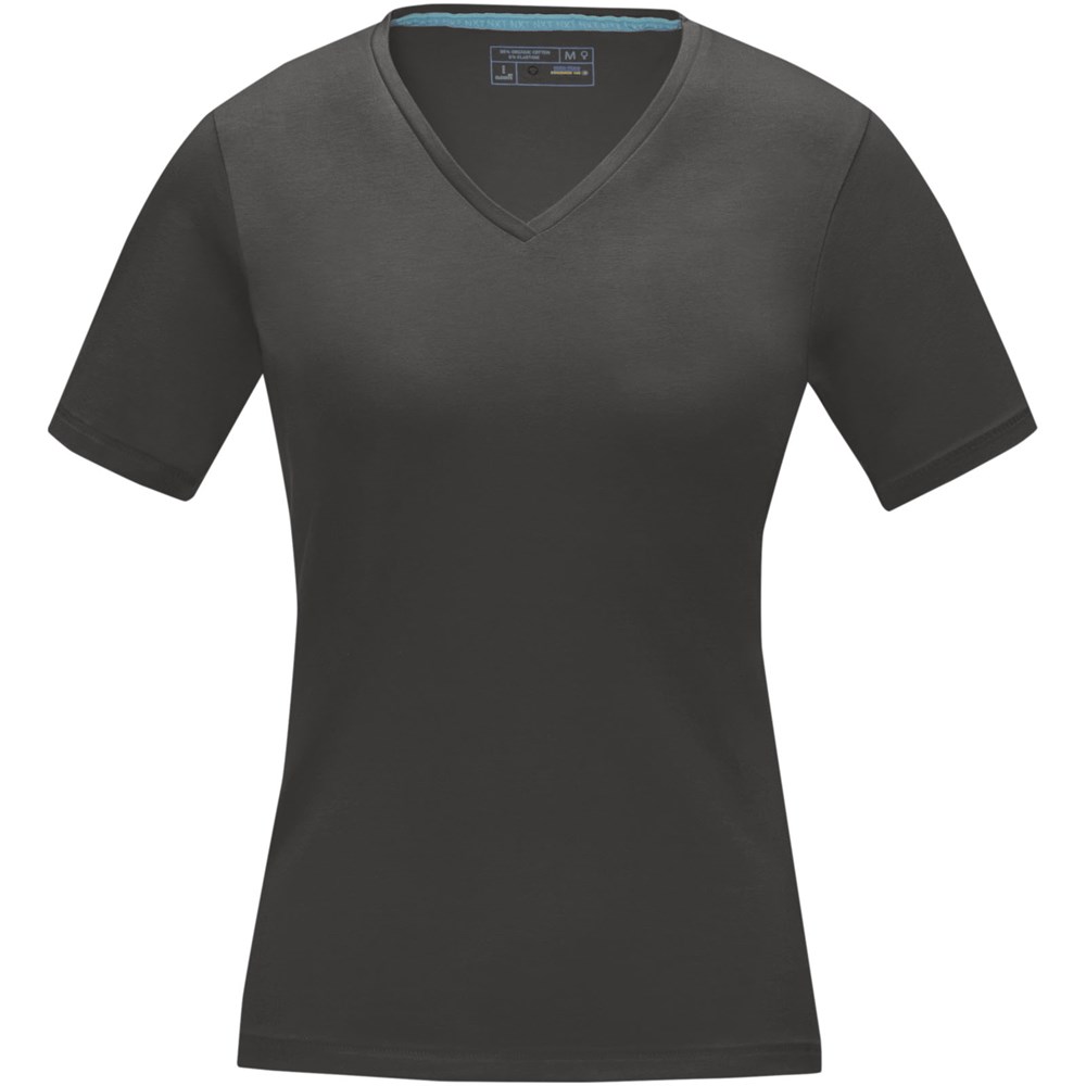 Das kurzärmelige Bio-T-Shirt mit V-Ausschnitt für Damen von Kawartha ist eine stilvolle und nachhaltige Wahl. Das T-Shirt besteht zu 95% aus Bio-Baumwolle mit einem Gewicht von 200 g/m2 und ist damit nicht nur gut für die Umwelt, sondern auch weich und angenehm zu tragen. Die 5% Elastan sorgen für eine weiche und dehnbare Passform. Mit seinem V-Ausschnitt und den kurzen Ärmeln ist dieses T-Shirt sowohl nachhaltig als auch modern.
