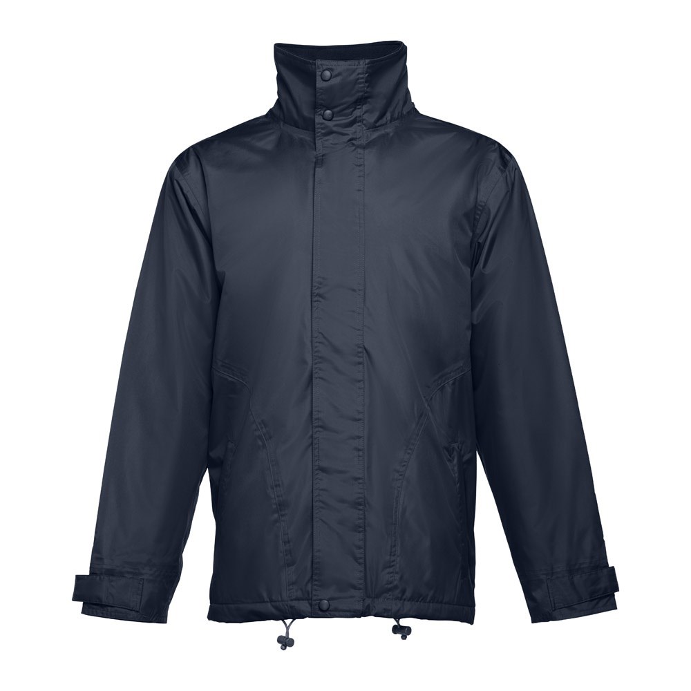Parka aus 100% Polyester, gepolstert - Aussenseite (240g/m²) aus 100% Polyester-Pongee 240 und wasserdichter PVC-Beschichtung, Innenseite (65g/m²) aus 100% Polyester-Taft, Füllung aus 100 % Polyester (80g/m²). Der Parka hat einen mit schwarz ausgekleideten Polarkragen, der mit einem Klettverschluss schliessbar ist. Die Kapuze ist faltbar und somit leicht im Kragen zu verstauen. Die Schnurbänder mit schwarzem Stopper am Kragen und an der Jackenunterseite ermöglichen eine korrekte Anpassung. Der Reissverschluss hat eine Klettverschlussabdeckung, die zusätzlich mittels Druckknöpfen geschlossen werden kann. 2 Außentaschen mit Abdeckung und 2 Innentaschen mit Klettverschluss. Mit geripptem Innenbund in 2x2, verstellbarem Ärmelbund ebenfalls mit Klettverschluss. Der Reißverschlusszugang auf der Rückseite vereinfacht die Veredelung. Größen: XS, S, M, L, XL, XXL