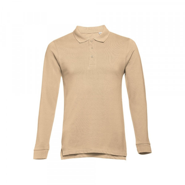 Herren Poloshirt aus Piqué Stoff 100% kardierter Baumwolle (210 g/m²), langarm. Bei der Farbe 183 bestehend aus 85% Baumwolle und 15% Viskose. Gerippter Kragen und Ärmelbund. Verstärkungsband am Kragen und verstärkte Knopfleiste mit 3 farblich abgestimmten Knöpfen und einem Ersatzknopf an der Innennaht. Unten mit seitlichen Öffnungen. Größe: 3XL