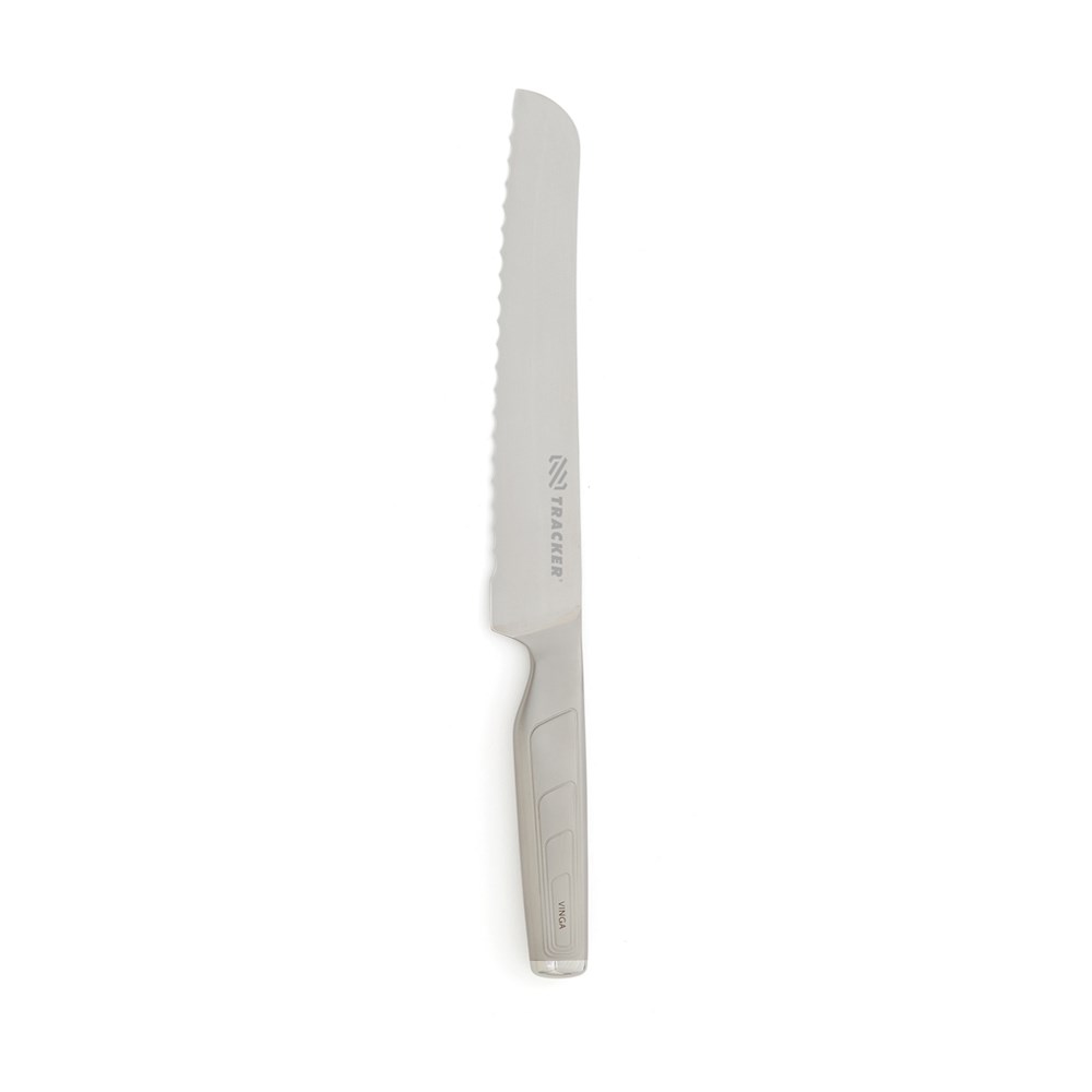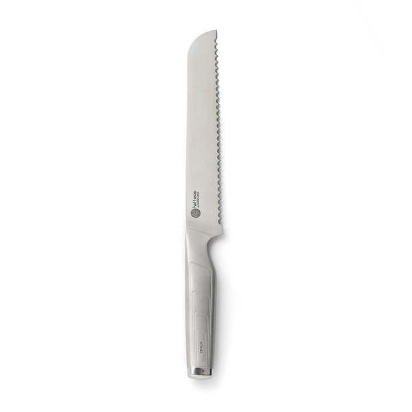 Hochwertiges Brotmesser aus japanischem Stahl (420 J2). Mit diesem scharfen Brotmesser krümelt das Brot nicht, wenn Sie es schneiden.