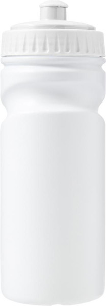 Trinkflasche aus Kunststoff, 100% recyclebar, mit farbigem Schnellverschluss, Inhalt ca. 500 ml.