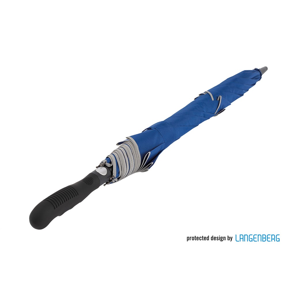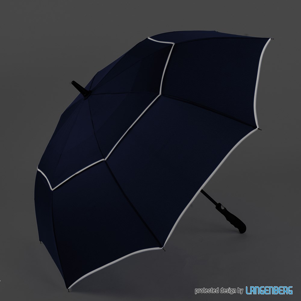 Der Schirm bietet eine Bespannung aus 190T Pongee mit zwei reflektierenden Bordüren für verbesserte Sichtbarkeit. Mit einem Durchmesser von ca. 113 cm bietet er optimalen Schutz vor Wind und Regen. Im geschlossenen Zustand misst der Schirm ca. 87 cm in der Länge. Die Automatikfunktion ermöglicht ein schnelles Öffnen. Der Schirm hat 8 Segmente und ist mit einer Windproof-Funktion ausgestattet, die ihn auch bei starkem Wind stabil hält. Der gummierte Profilgriff in schwarz sorgt für einen sicheren und komfortablen Halt.