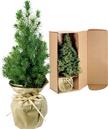 Eine lebende Zuckerhutfichte 20 - 30 cm, verpackt in einer Einzelversandkartonage, als kleines Bäumchen zu Weihnachten. Klassisch und dekorativ versetzt diese Zuckerhutfichte jeden Raum in eine weihnachtliche Stimmung. Das Bäumchen kann auf Wunsch von uns direkt an einzelne Empfänger versendet werden. Ganz natürlich wurde dieses Bäumchen nur mit Naturpapier und Bastband geschmückt. Der Werbedruck erfolgt auf einem separaten Anhängekärtchen Artikel 6202 (40 x 60 mm) ab 250 Stück, einer separaten Grußkarte aus unserem Sortiment oder auf einer Beilage nach Wunsch. Zudem steht als Werbefläche ein separater Schuber, Art.-Nr. 4199-8, zur Verfügung. Inhalt: Bäumchen 20-30 cm geschmückt mit Naturpapier, Bastband