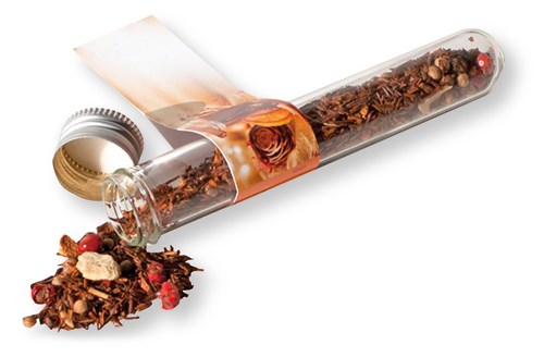 Das Reagenzglas ist eine pfiffige Idee Tee zu verpacken. Mit dem Schraubdeckel kann es immer wieder neu gefüllt werden. Platz für den Werbedruck ist auf dem Standardmotiv des Fähnchens oder eine eigene Gestaltung, jeweils bereits ab 250 Stück. Inhalt: ca. 4 g Tee Pfeffernuss-Orange Warn- und Sicherheitshinweise: Kinder nicht unbeaufsichtigt am heißen Herd oder mit kochendem Wasser hantieren lassen!
