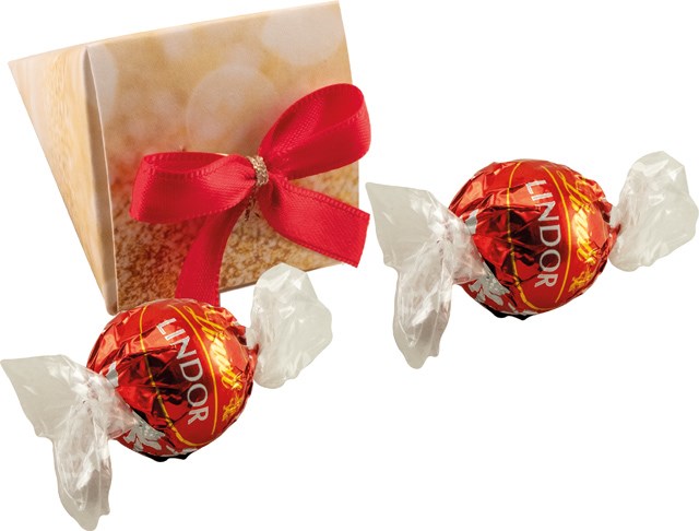 Eine kleine Tüte für Schokoladen-Gourmets. 2 Schoko-Kugeln von Lindt versüßen die Adventszeit. Das Standardmotiv der Spitztüte bietet Platz für Ihren Werbeeindruck. Alternativ, kann, ebenfalls ab 250 Stück, eine individuelle Gestaltung erfolgen.