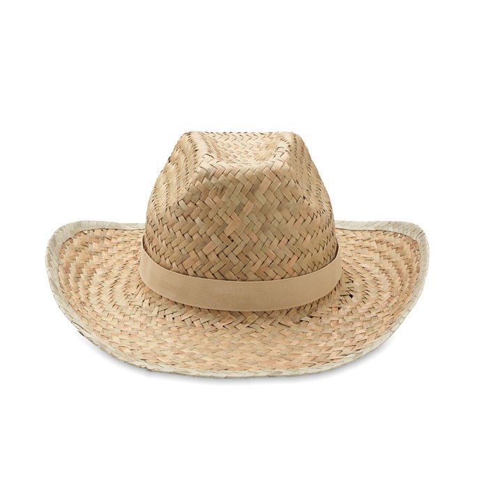 Cowboy-Hut aus natürlichem Stroh mit Polyester-Band.
