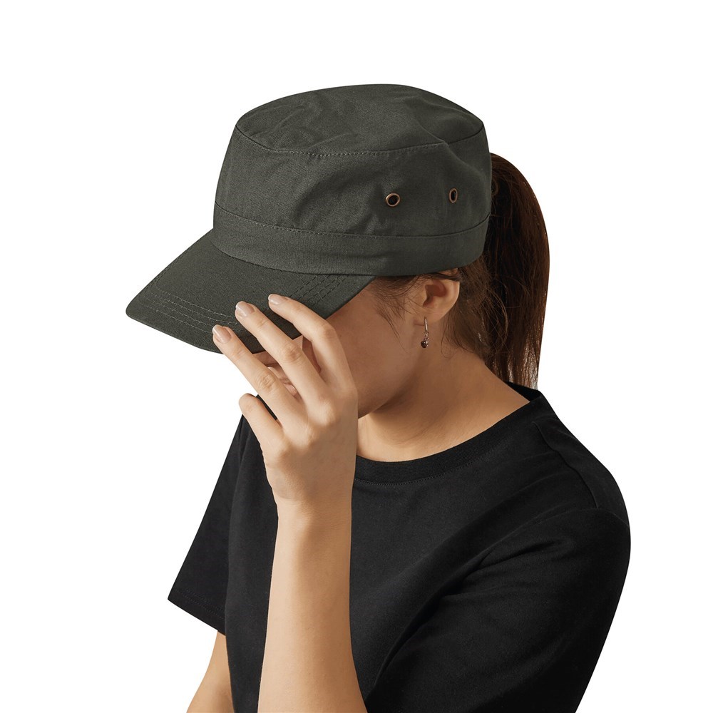 Military-Cap SOLDIER: lässige Ausführung im Armee-Stil, aus robuster Baumwolle, 4 seitliche Metall-Luftlöcher und größenverstellbarer Metallverschluß am Hinterkopf
