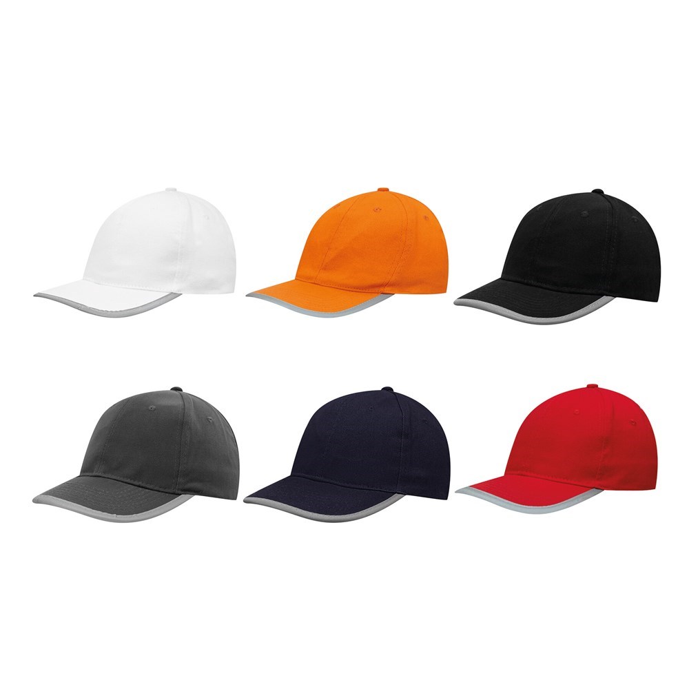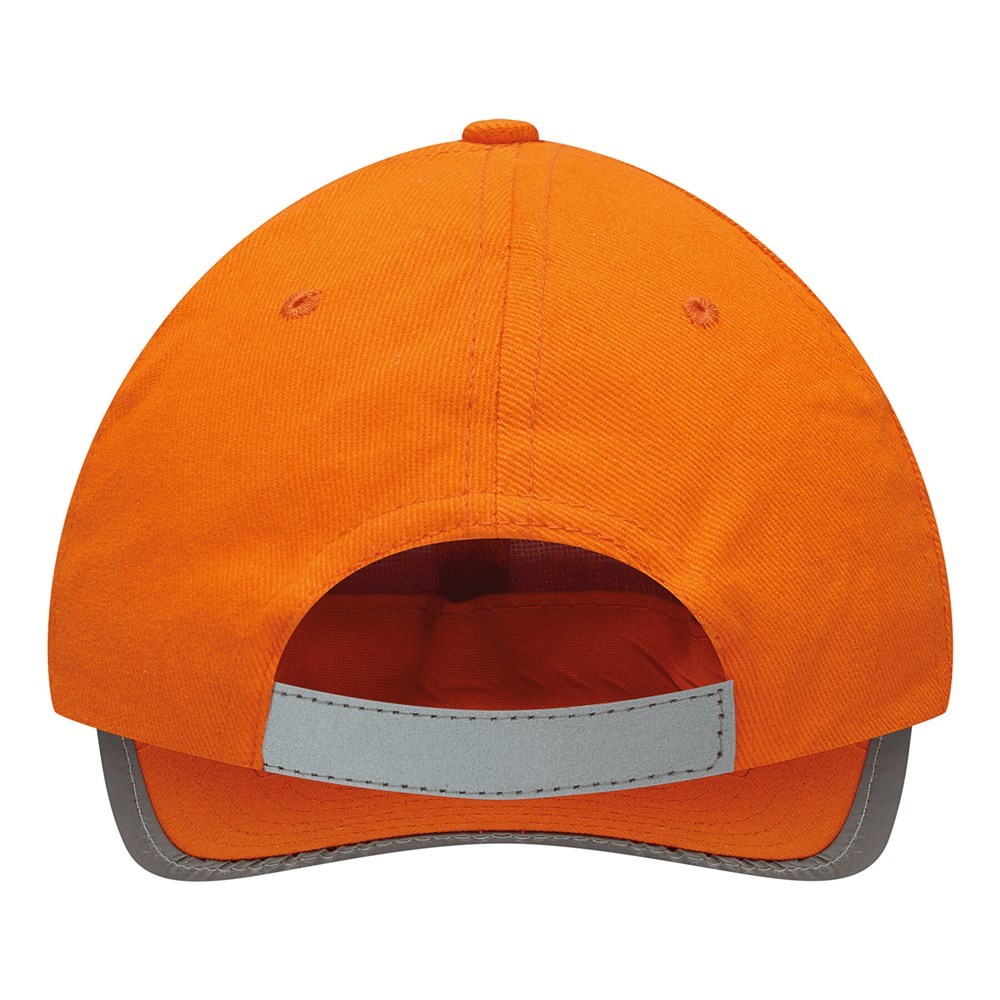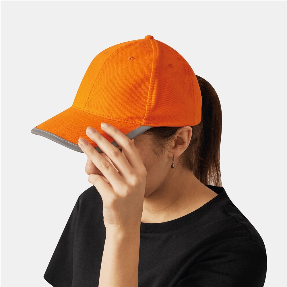 6-Panel-Baseball-Cap DETECTION: mit reflektierendem Band an Schirm und hinten auf dem Klettverschluss, 6 gestickte Luftlöcher, Knopf, verstärkte Frontsegmente, 100 % Baumwolle (heavy-brushed)