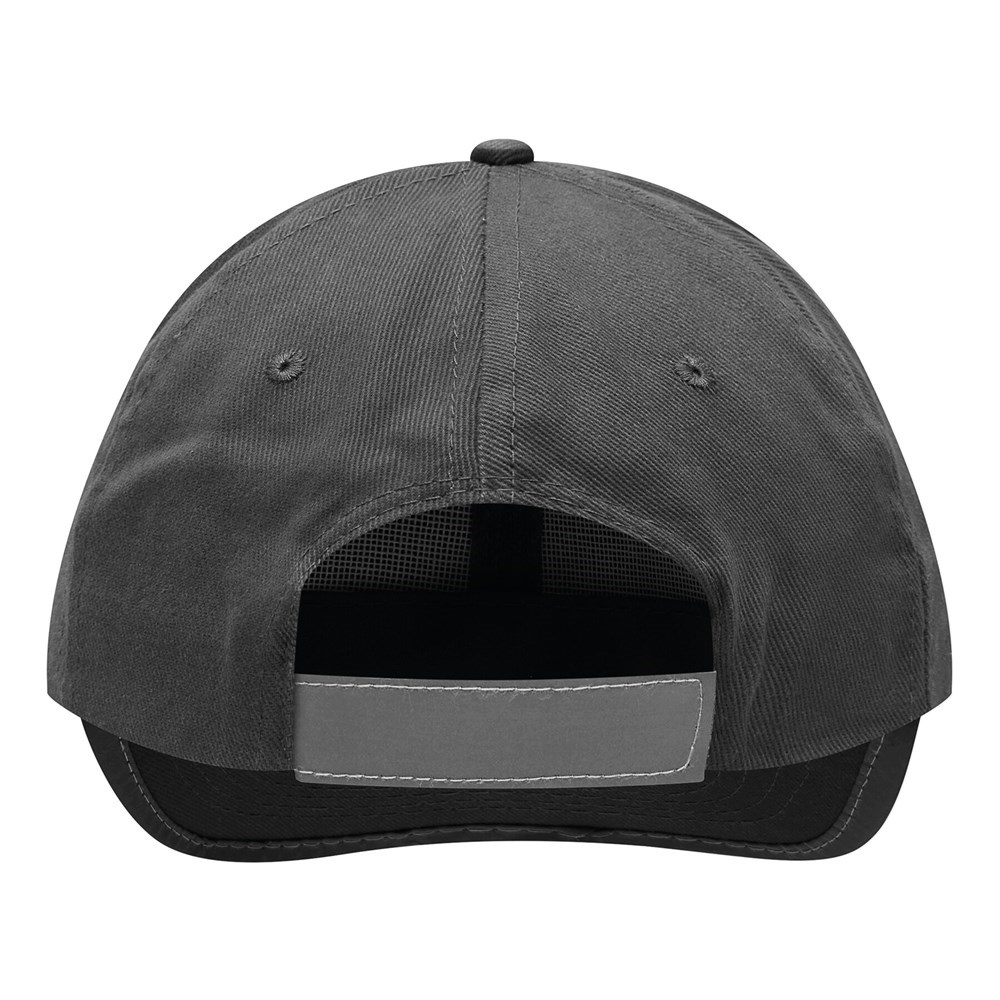 6-Panel-Baseball-Cap DETECTION: mit reflektierendem Band an Schirm und hinten auf dem Klettverschluss, 6 gestickte Luftlöcher, Knopf, verstärkte Frontsegmente, 100 % Baumwolle (heavy-brushed)