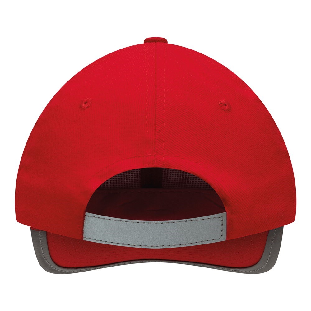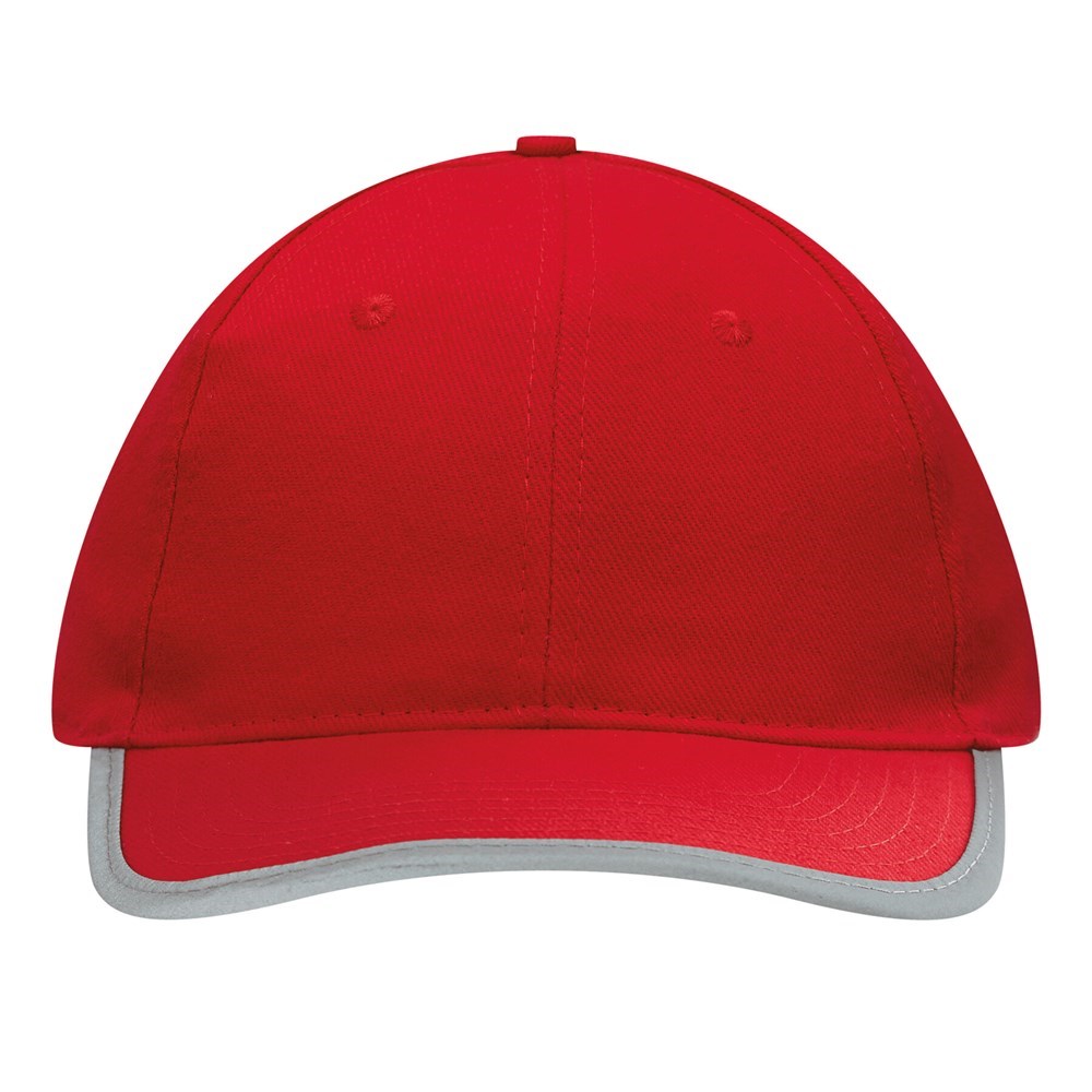 6-Panel-Baseball-Cap DETECTION: mit reflektierendem Band an Schirm und hinten auf dem Klettverschluss, 6 gestickte Luftlöcher, Knopf, verstärkte Frontsegmente, 100 % Baumwolle (heavy-brushed)
