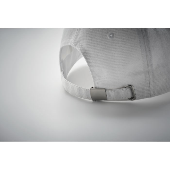 Baseball Kappe. 5 Panels. Silberne Schnalle aus Stahl. 4 farblich abgestimmte, umstickte Belüftungslöcher. Heavy Brushed Twill Baumwolle 260 g/m². Größe 7 1/4.