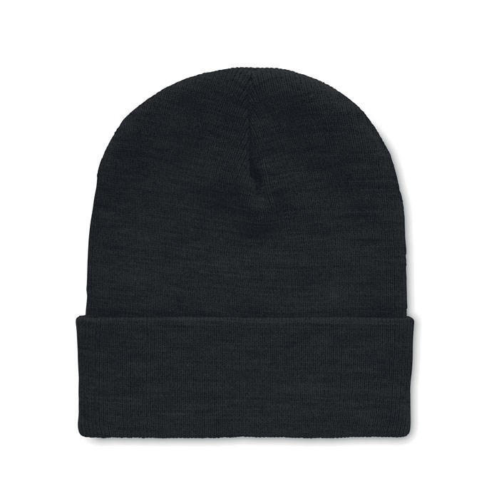 Gestrickte Beanie aus softem, elastischem RPET Polyester. Mit Umschlag. Unisex.