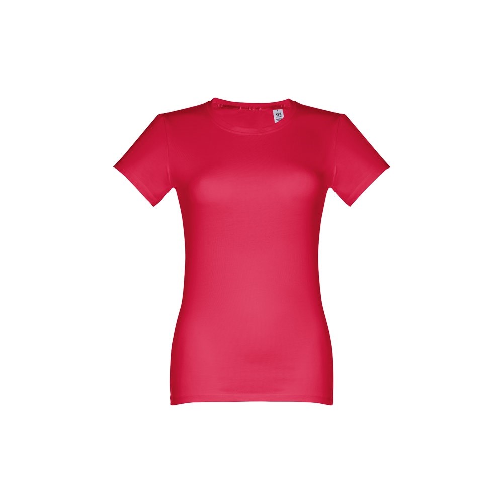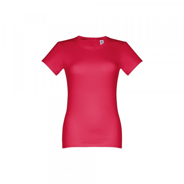 Damen T-shirt aus 100% Strickjersey und Baumwolle (190g/m²) mit kardiertem Baumwollfaden, tailliert. Diese hat einen dünnen Jersey-Kragen mit Satin-Verstärkungsband und Doppelnaht an Ärmeln und Saum. Bei der Farbe 183 bestehend aus 90% Baumwolle und 10% Viskose. Größen: S, M, L, XL, XXL