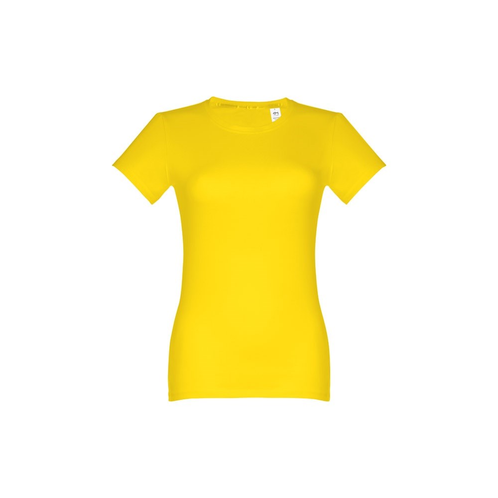 Damen T-shirt aus 100% Strickjersey und Baumwolle (190g/m²) mit kardiertem Baumwollfaden, tailliert. Diese hat einen dünnen Jersey-Kragen mit Satin-Verstärkungsband und Doppelnaht an Ärmeln und Saum. Bei der Farbe 183 bestehend aus 90% Baumwolle und 10% Viskose. Größen: S, M, L, XL, XXL