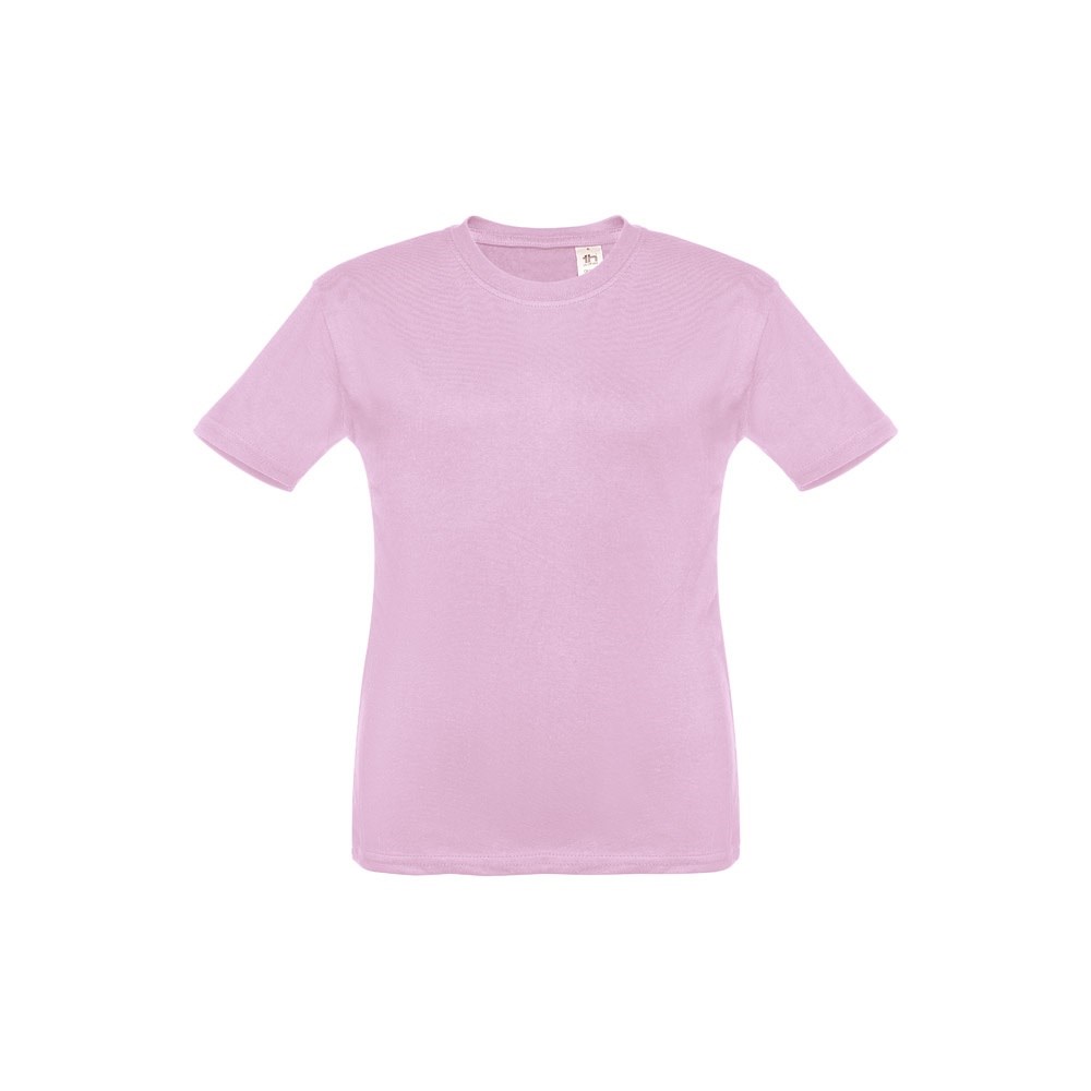 Kinder T-Shirt aus 100% Strickjersey und Baumwolle (150g/m²), unisex mit geripptem Kragen in 1x1 Ripp, Jersey-Verstärkung und Doppelnaht an den Ärmeln und Saum. Größen: 2, 4, 6, 8, 10, 12