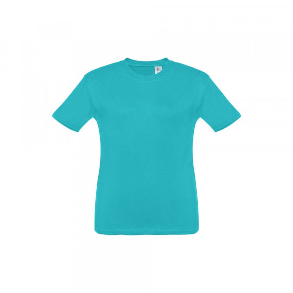 Kinder T-Shirt aus 100% Strickjersey und Baumwolle (150g/m²), unisex mit geripptem Kragen in 1x1 Ripp, Jersey-Verstärkung und Doppelnaht an den Ärmeln und Saum. Größen: 2, 4, 6, 8, 10, 12