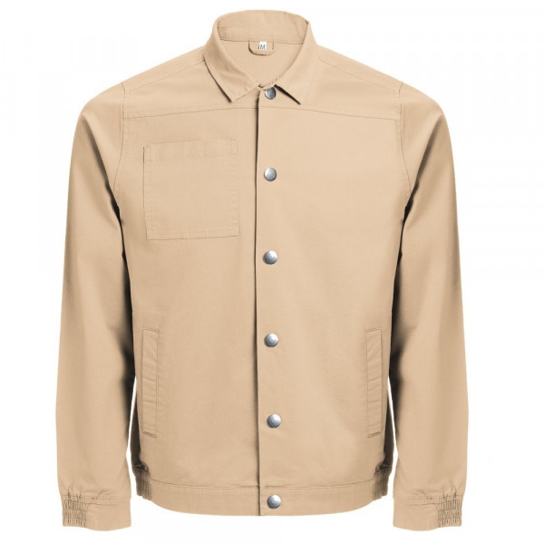 Jacke aus 98% Baumwolle und 2% Elasthan. Mit einem modernen Schnitt hat diese Jacke 2 Rückenfalten und Bund an Ärmeln und Taille. Das Schliessen erfolgt mittels Druckknöpfen. Auf der Vorderseite sind 2 Seiten- und eine Brusttasche Größen: S, M, L, XL, XXL, 3XL