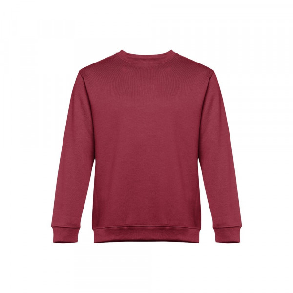 Sweatshirt aus 50% Baumwolle und 50% Polyester (300g/m²), unisex. Innen kardiert, 1x1 Ripp, Bund am Ärmel und Saum, Doppelnaht und Verstärkungsband am Kragen. Größen: S, M, L, XL, XXL