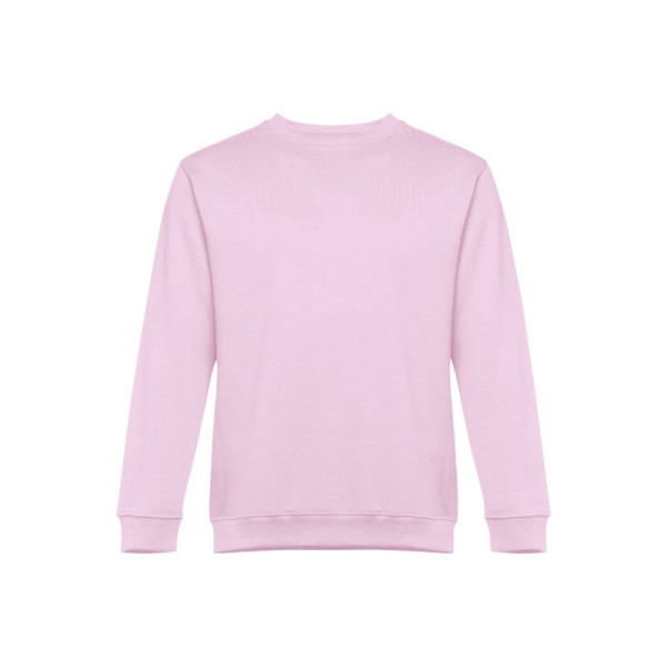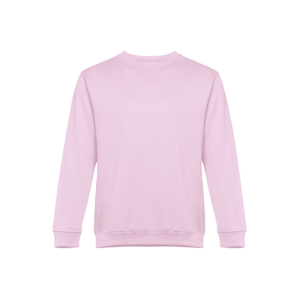 Sweatshirt aus 50% Baumwolle und 50% Polyester (300g/m²), unisex. Innen kardiert, 1x1 Ripp, Bund am Ärmel und Saum, Doppelnaht und Verstärkungsband am Kragen. Größen: S, M, L, XL, XXL