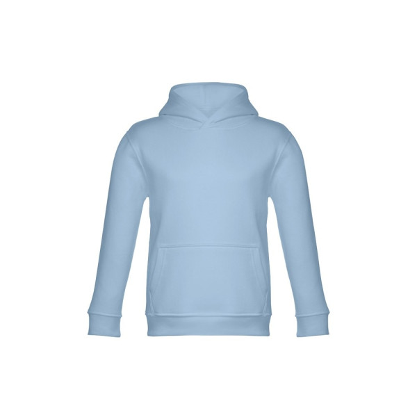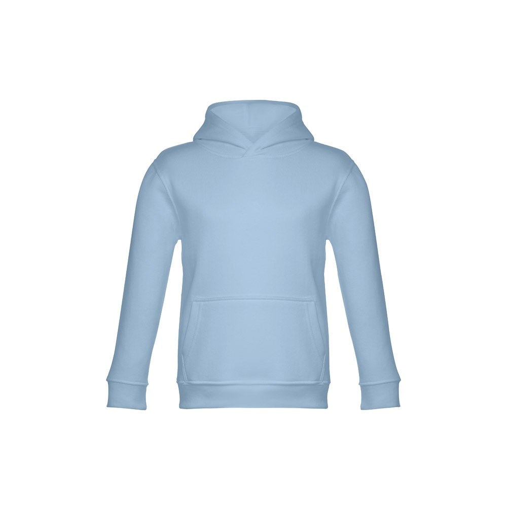 Kinder Sweatshirt aus 50% Baumwolle und 50% Polyester (320g/m²), unisex mit Kapuze in Jersey. Innen kardiert, Ripp 1x1 an Ärmelbündchen und Bund und einer Kängurutasche. Kapuze in Übereinstimmung mit den Sicherheitsstandards der Europäischen Union. Größen: 2, 4, 6, 8, 10, 12