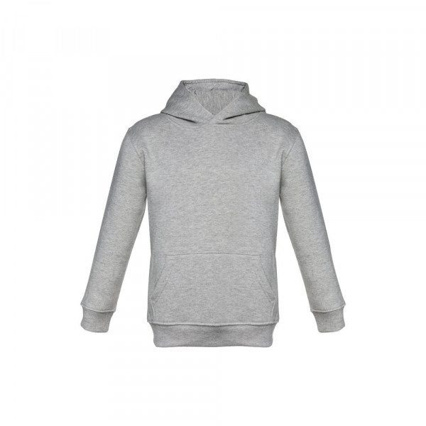 Kinder Sweatshirt aus 50% Baumwolle und 50% Polyester (320g/m²), unisex mit Kapuze in Jersey. Innen kardiert, Ripp 1x1 an Ärmelbündchen und Bund und einer Kängurutasche. Kapuze in Übereinstimmung mit den Sicherheitsstandards der Europäischen Union. Größen: 2, 4, 6, 8, 10, 12