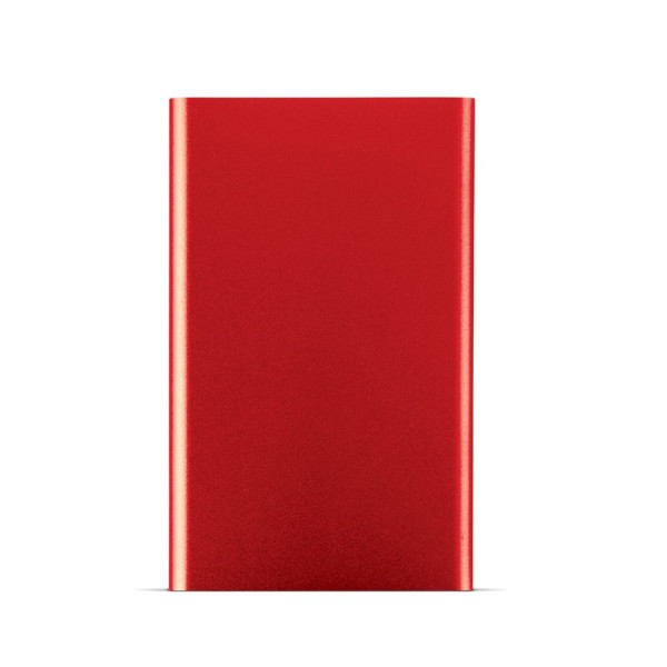 Aluminium Powerbank mit 4000mAh Kapazität in einem flachen Gehäuse. Einzeln verpackt in einer Geschenkbox, inkl. Ladekabel.