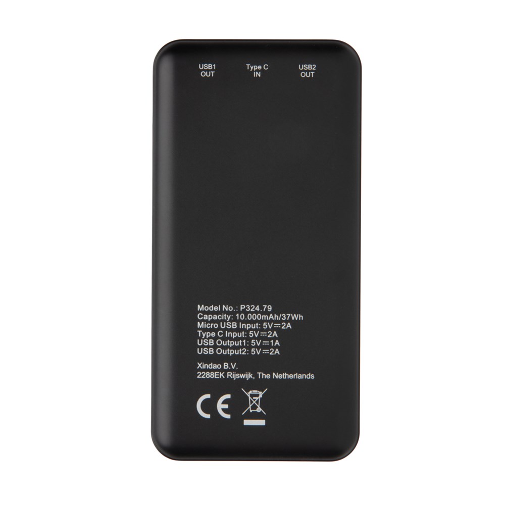10.000 mAh Powerbank aus leichtem ABS im Taschenformat. Die A-Grade 10.000 mAh Lithium-Polymer Batterie erlaubt es Ihnen bei voller Ladung Ihr Smartphone 4-5 mal aufzuladen. Mit Dual USB-Port. Die LED's zeigen Ihnen den Ladestand der Powerbank an, so dass Sie immer wissen wann es Zeit wird sie wieder zu laden. Input: 5V/2A. Type C Input: 5V/2A.; Output USB 1: 5V/2A.; Output USB 2: 5V/1A